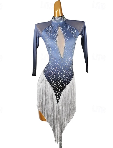 Latinamerikansk dans Klänning Strass Tofs Dam Prestanda Träning Långärmad Hög Elastan Tyll
