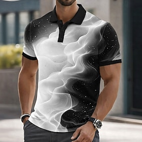 Herr Geometrisk Linje Polo Kortärmad Polotröjor Skjortor med krage Ledigt Utomhus Fritids- Dagliga kläder 3D-utskrift Knappar Sommar Blå Rubinrött Purpur
