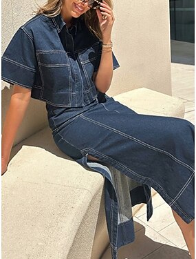 Dam Kjoluppsättningar Bolero Top Kortärmad Tröjkrage Ensfärgat Mode Streetwear Ledigt Dagligen Utomhus Blå Sommar Normal