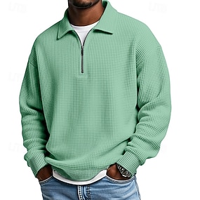 Herr Våffelpikétröjor Strukturerad Ledigt Utomhus Fjärdedels blixtlås Långärmad Mode Modern Ensfärgat Strukturerad Stickat Vår & Höst Alla årstider Lös passning Svart Marinblå Mörkgrön Purpur Kaki