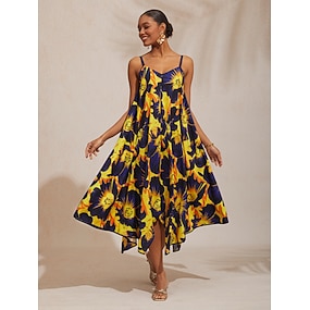 stretchig blommig placeringsmönstrad miniklänning som passar för semestern
