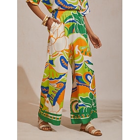 Dam Byxor Avslappnad Rak Fullängd Satäng Mönster Modernt Modernt Strandstil Semester Dagliga kläder Multi Color Vår & sommar XS S M
