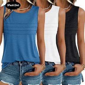 Multipack 3st Dam Rund hals Ärmlös svart+vit+grön Stridsvagn Väst Ärmlös tröja Ensfärgat Ledigt Dagligen Polyester Sommar