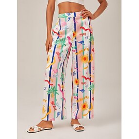 Dam Ledig Trosor Fullängd Satäng Hög midja Elegant bohemliv Semester Ledigt Strandsemester Regnbåge Sommar XS S M