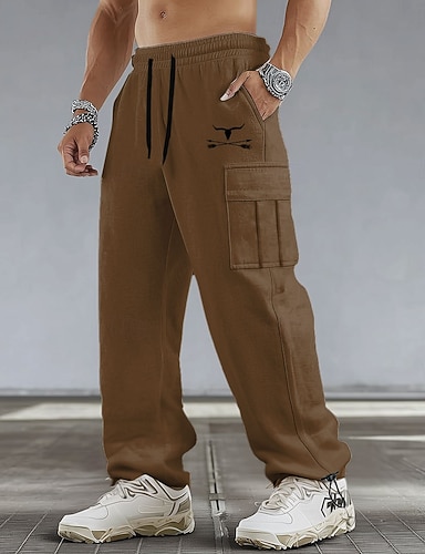 Herr Ren Jakt Joggingbyxor Joggare Långbyxor Medium Midja Dragsko Elastisk midja Ledigt Vintage retro Utomhus Camping och vandring Jakt Snörning Atletiska mjukisbyxor med fickor Vår Höst 3D-tryck Grå