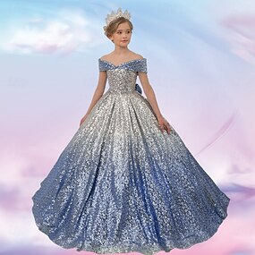 Barn Flickor Festklänning Paljett Kortärmad Prestanda Bröllop Rynkad Nät Mode Prinsessa Polyester Midi Festklänning Swingklänning Sommar Vår 3-12 år Blå