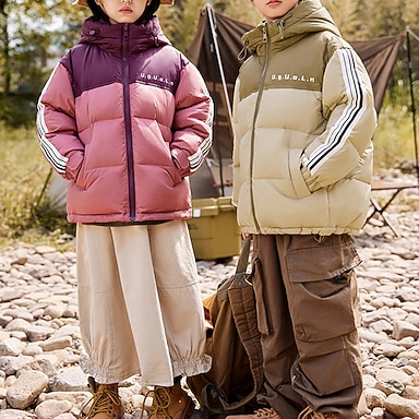 Barn Flickor Dunjacka Pufferjacka Färgblock Sport Ficka Håller värmen Vindtät Utomhus Täcka Ytterkläder 4-12 år Vinter Svart Rodnande Rosa Rubinrött