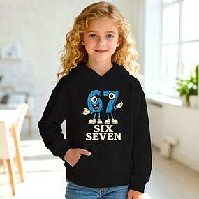 Unisex Flickor 3D Grafisk Rolig slang 67 Huvtröja Pullover Långärmad 3D-tryck Vår Höst Sport Mode Streetwear Barn 4-12 år Huva Utomhus Ledigt Dagligen Normal