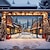 Jul gobeläng Garageportkåpa Stor hängande Fönster söt stil 3D Fest Utomhus Semester Bakgrundsfotografering Yard Heminredning