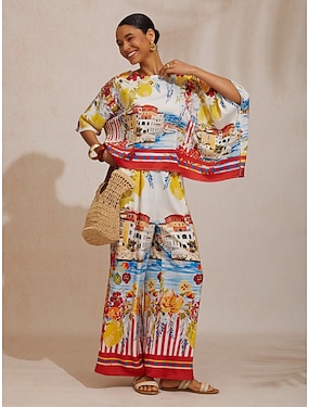 Santorini sommartopp med dolmanärm i silkeslen satin