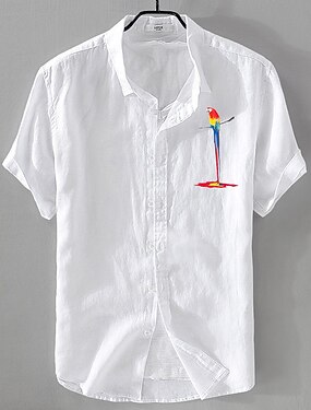 Herr Skjorta Linneskjorta Sommarskjorta Strandskjorta Knapp upp skjorta Fågel Semester Ledigt Svart Vit Rodnande Rosa Blå Kortärmad Nedvikt Sommar Kläder