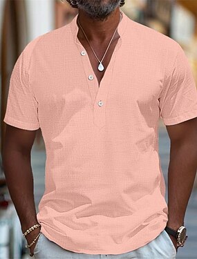 Herr Skjorta Linneskjorta Bandkrageskjorta Popover skjorta Sommarskjorta Standkläder Slät Semester Streetwear Svart Vit Rodnande Rosa Marinblå Kortärmad Henley Sommar Kläder