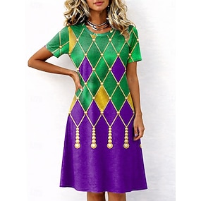 Karnival Mardi gras Dam Midiklänning Skiftklänning T shirtklänning Sommarklänning Ledigt Dagligen Normal Grafisk Abstrakt Kortärmad Rund hals Vit Purpur Grön Sommar Vår