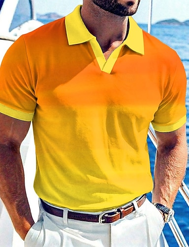 Herr Geometrisk Linjer / vågor Gradientfärg Skjorta Knapp upp skjorta Kortärmad Mode Casual Dagligen Utomhus Semester Sommar Vår Nedvikt 3D-utskrift Linne som skjorta Blå Gul Rubinrött Purpur Grön
