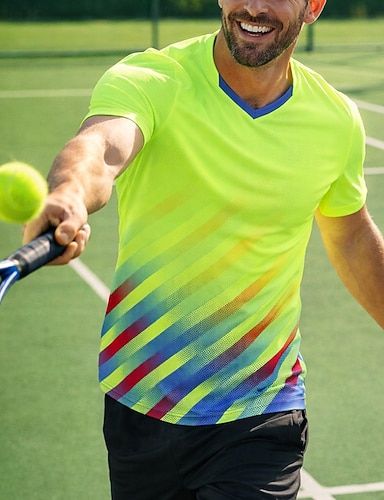 Herr Lutning Sporttröja Tennisskjorta Tenniströja Kortärmad Snabb tork Stretch Fuktabsorberande Andningsfunktion Tennis Golfskor Pickleball V-hals Överdelar Marinblå Grön Tenniskläder
