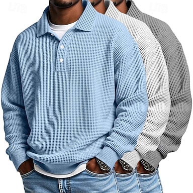 Herr Våffelpikétröjor Strukturerad Formell Företag Klassisk Långärmad Mode Ensfärgat Slät 3 st Flerpack Höst Vår & Höst Alla årstider Lös passning 1# 2# 3# 4# 5# 6# Våffelpikétröjor