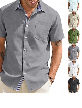 Herr Skjorta Linneskjorta Knapp upp skjorta Slät Semester Gata Svart Vit Kaki Mörkgrå Kortärmad Tröjkrage Sommar Vår Kläder Ficka