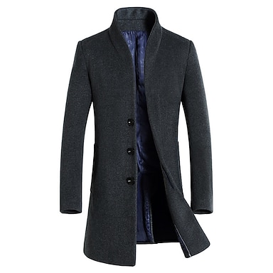 Herr Vinterkappa Yllekappa Rock Utomhus Företag Höst vinter Ylle Vindtät Varm Ytterkläder Kläder Modern Stil Solid färg Hög krage Enkelknäppt