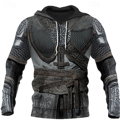 Herr Grafisk Rustning Viking Huvtröja Huvtröjor Tröja Sportkläder Ledigt Stor och hög Långärmad Huva Ledigt Dagligen Helgdag 1 2 3 4 5 Spetsknuten Vår & Höst Designer S M L XL XXL 3XL