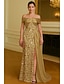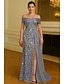 A-linje Golvlång Kvälls klänningar Balklänning med överkjol Elegant Hög split Ärmlös Över axeln Formell Bröllop Satäng Spets med Veckad Paljett 2025