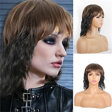 Modern kort shaggy mullet peruk för kvinnor 80-tals mullet peruk pixie cut peruk med lugg syntetisk naturlig falsk blond hårersättning peruker med vita höjdpunkter 14 tum mullet frisyr (blond)