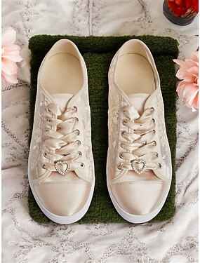 damsneakers i spets med satängkanter - perfekta för ett avslappnat chic bröllop