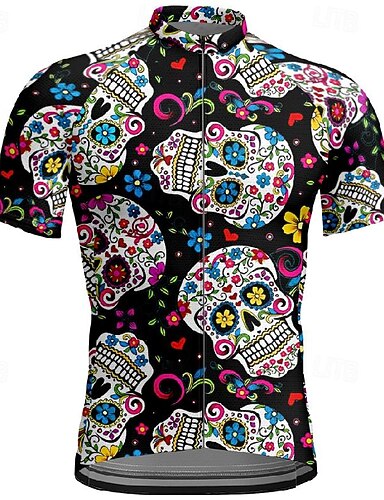 Herr Cykeltröja Mönstrad Sockerskalle Skelett Kortärmad Cykel Tröja Överdelar med 3 bakfickor Bergscykling Vägcykling Snabb tork Dragkedja fram Bakficka Fuktabsorberande sporter Röd Blå Orange Kläder