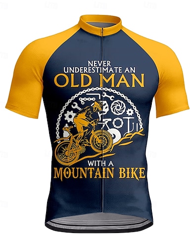 Herr Cykeltröja Grafisk Bokstav & Nummer Rolig Kortärmad Cykel Tröja Överdelar med 3 bakfickor Bergscykling Vägcykling Snabb tork Reflexremsa Bakficka Fuktabsorberande sporter Gul Marinblå Orange