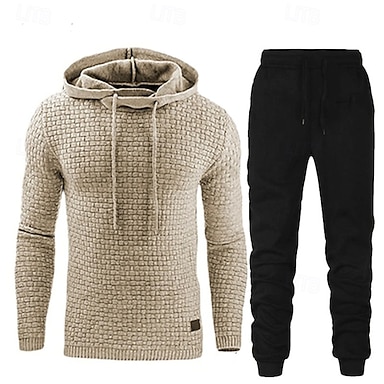 Herr Huvtröja Träningsoverall Aprikos Svart Vit Armégrön Rubinrött Huva Slät 2 st Sport & Utomhus Dagligen Helgdag Streetwear Grundläggande Ledigt Vår & Höst Kläder Pull Tröjor