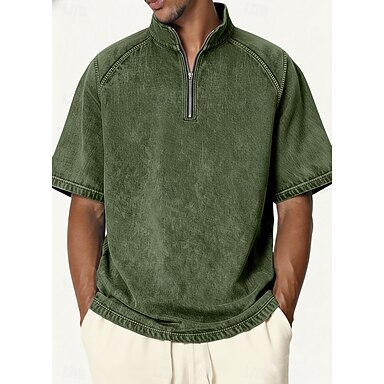 Herr Polo Pikétröjor Semester Gata Fjärdedels blixtlås Kortärmad Vintage Mode Ensfärgat Dragkedja Sommar Vår Normal Blå Svart Rodnande Rosa Marinblå Purpur Brun Polo