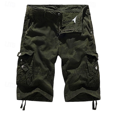 Herr Cargobyxor Cargo-shorts Shorts Casual shorts Flera fickor Slät Enfärgat Snabb tork Knelängd Utomhus Gym Träning Sport Sportig Svart Grön Oelastisk