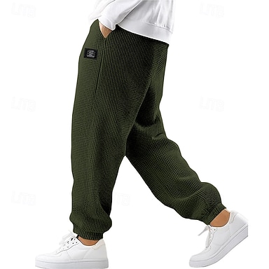 Herr Våffelstruktur Joggingbyxor Joggare Långbyxor Casual byxor Snörning Elastiskt ärmuppslag Ensfärgat Komfort Fullängd Utomhus Dagligen Streetwear Mode Elegant och modernt Svart Vit Elastisk