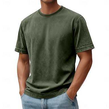 Herr T-shirt Tvätta skjorta i 100 % bomull Kortärmad Rund hals Sommar Vår Alla årstider Ensfärgat Elegant Vintage Neutral Ficka Färgade plagg Bedrövad Ledigt Hem Utomhus Svart Rosa Brun Topp t-shirt