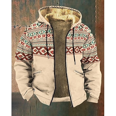 Herr Grafisk Geometrisk Huvtröja Jakke Mode Streetwear Ledigt Långärmad Huva Utomhus Utomhussport Utekväll Kaki Mörkgrå Grå Ficka Mönster Fleece Vinter Designer S M L XL 2XL 3XL