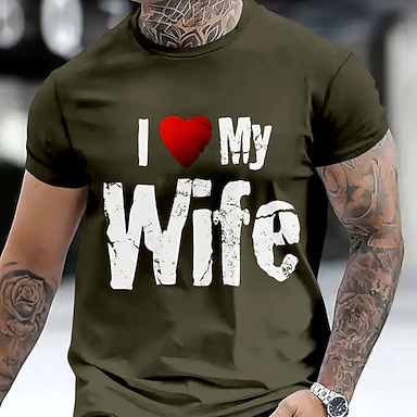 Herr Kärlek fru T-shirt 100 % bomull Kortärmad Grafisk Skjorta Svart Armégrön Mörkblå Bekväm t-shirt Semester Gata Modedesignerkläder