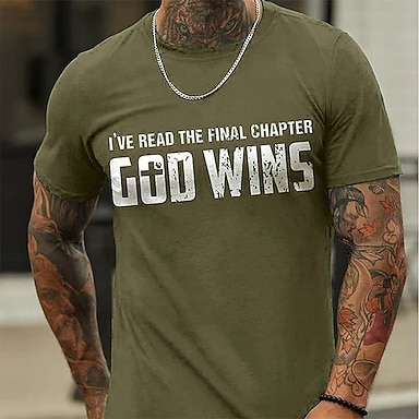 Mäns Kort Ärmad Grafisk T-Shirt 'JAG HAR LÄST DET AVSLUTANDE KAPITLET GUD VINNER' Kristen Tro T-shirt