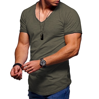 herr v-ringad t-shirt - enfärgade korta skjortor för män kortärmad smal fitness träning atletisk affär avslappnad grundläggande stora långa skjortor svart grå armégrön