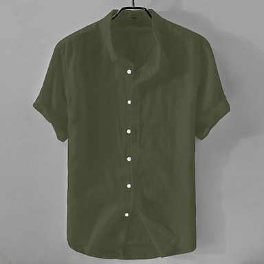Herr Skjorta Linneskjorta Casual skjorta Bomullskjorta Slät Semester Gata Svart Vit Rodnande Rosa Blå Kortärmad Nedvikt Sommar Kläder Button-Down