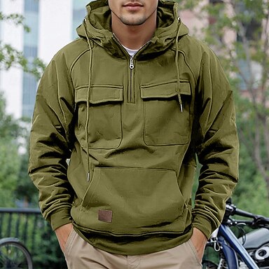 Herr Huvtröja Huvtröja med dragkedja i Quarter Taktisk hoodie Taktisk Vinrött Svart Vin Armégrön Marinblå Huva Slät Ficka Taktisk Sport & Utomhus Dagligen Streetwear Häftig Ledigt Vår & Höst Många