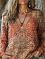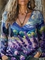Dam Blus Blommig Grafisk Elegant Vintage Stylish Långärmad V-hals Vanliga toppar Dagligen Helgdag Utekväll Rynkad Vin Armégrön Rubinrött Blå Ljuslila Vår Höst