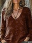 Dam Skjorta Blus Slät Elegant Vintage Stylish Långärmad V-hals Vanliga toppar Dagligen Helgdag Utekväll Rynkad Svart Vin Armégrön Blå Brun Sommar Vår Höst