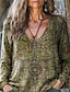 Dam Blus Blommig bohemliv Vintage Långärmad V-hals Vanliga toppar Dagligen Helgdag Mönster Gräsgrön Ljusgrön Vin Armégrön Rubinrött Sommar Vår Höst
