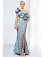Sjöjungfru / trumpet Svepsläp Balklänningar Kvälls klänningar Balklänning Formell klädsel Elegant Kändis Stil Silkig Ärmlös Enaxlad Formell Bröllop Paljetter med Fjäder 2025