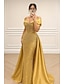 Åtsmitande Golvlång Kvälls klänningar Balklänning med överkjol Formell klädsel Elegant glittrande Silkig Kortärmad Över axeln Formell Bröllop Avtagbar Satäng Spets med Glitter Bård Paljett 2025