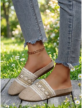 Beige platta mules för kvinnor – lätta slip-on-skor för vardagsbruk, resor, pendling och avslappnad stil