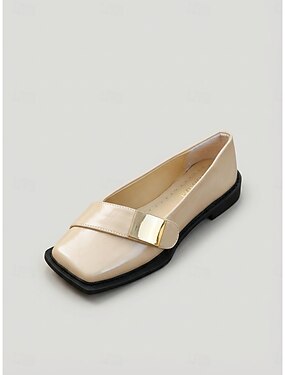 Chic beige fyrkantiga plattskor för kvinnor – asymmetrisk rem &guldfärgad metalldetaljer för dagligt kontor, avslappnade promenader &modern minimalistisk stil