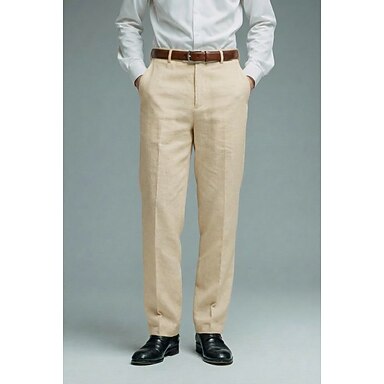 Herr Bomull Linne Kostymbyxor Casual byxor Dagligen Företag Lättvikt Ledigt vardag Formell Salvia Beige Vår & sommar Byxor Ensfärgat Normal Lång Oelastisk