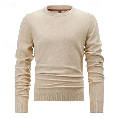 Herr Pullover tröja Stickad tröja Ribbad Sticka Normal Stickat Slät Rund hals Mode Grundläggande Dagliga kläder Datum Kläder Höst vinter Svart Vit S M L