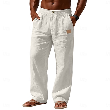 Herr Linne Byxor Långbyxor Sommarbyxor Joggarbyxor Elastisk midja Rakt ben Högsta stiga Ensfärgat Slät Komfort Andningsfunktion Fullängd Bröllop Helgdag Semester Mode Svart Vit Hög midja Oelastisk