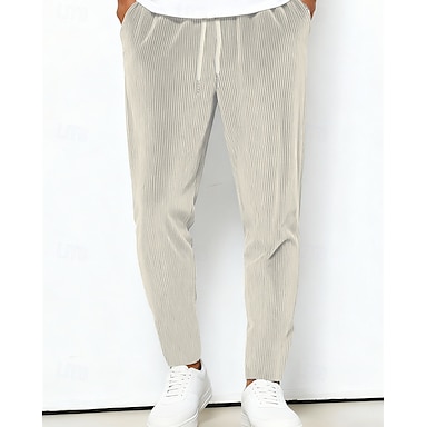 Herr Linne Byxor Långbyxor Sommarbyxor Strandbyxor Ficka Elastisk midja Snörning Slät Komfort Andningsfunktion Semester Dagligen Helgdag Hawaiisk Boho Vit Mörkröd